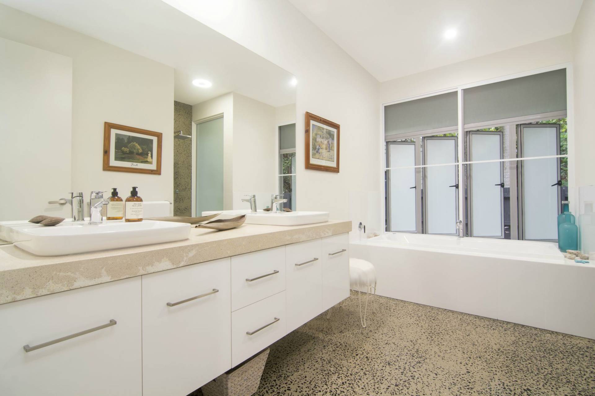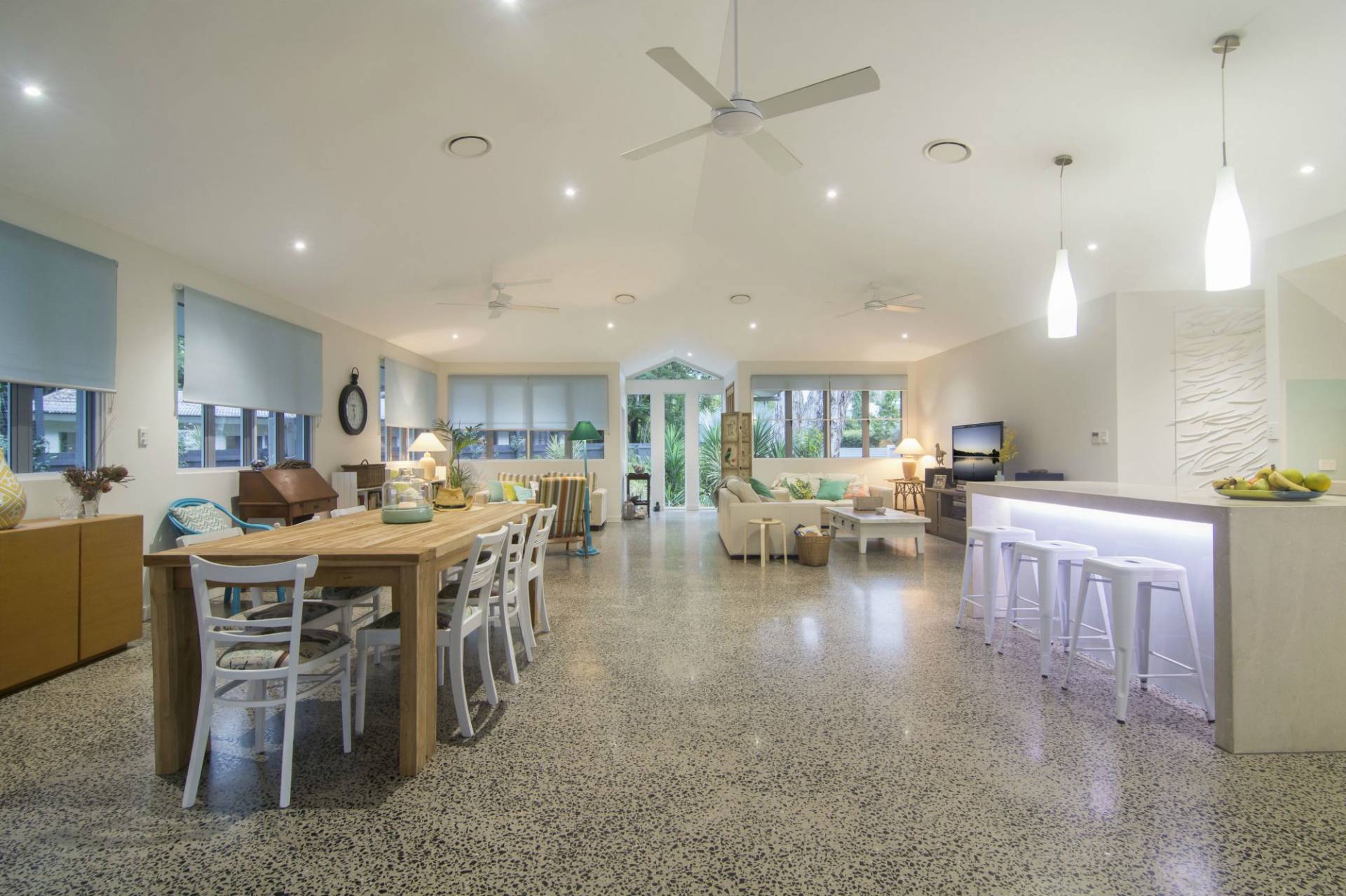 * Perfectly blend of polished concrete floors & timber decks