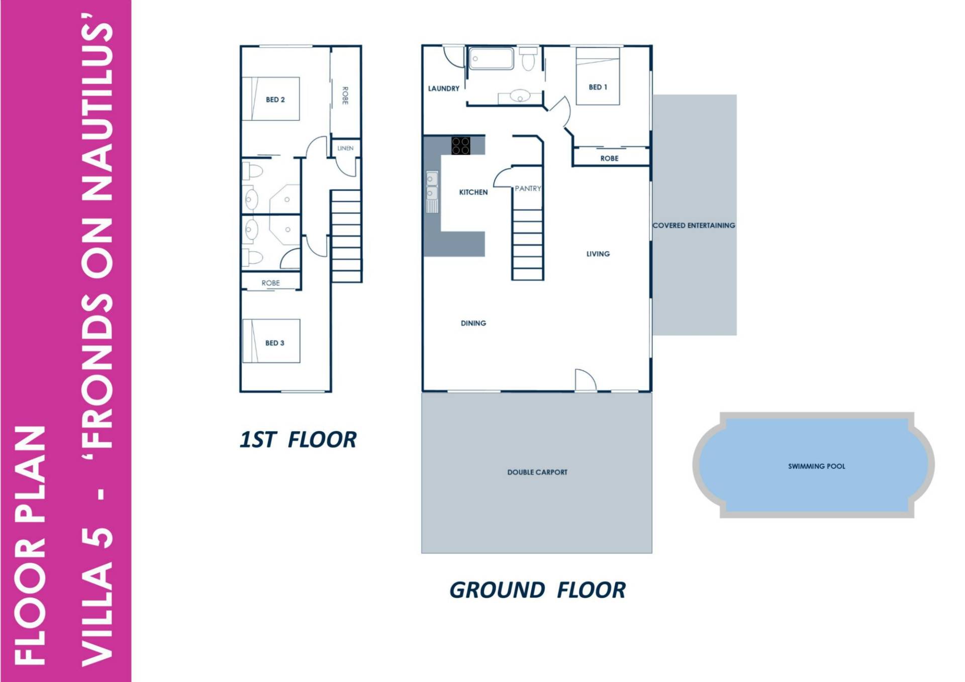 'Fronds on Nautilus' Villas are contemporary in design and functionality, each bedroom has its own full en-suite bathroom and built in robe, ceiling fans and split system air conditioning... way ahead of their time when constructed in 2001!