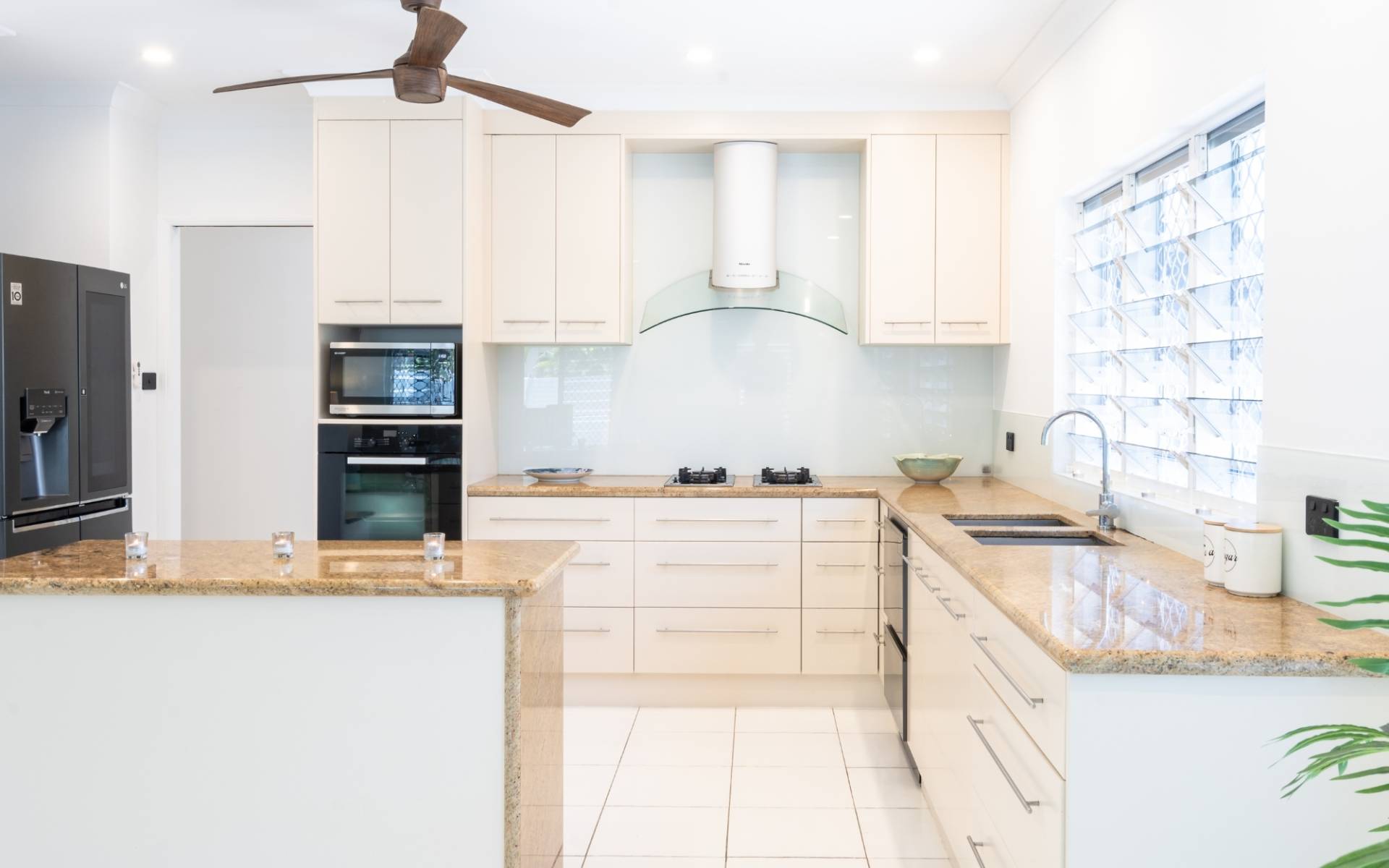 • Stone top kitchen benches with loads of natural light throughout.